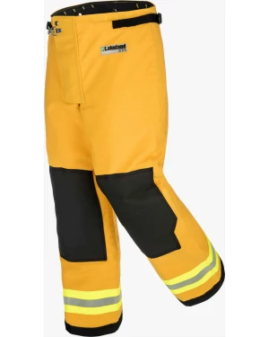 Lakeland fire suits offer advanced thermal protection with durable, lightweight materials designed for firefighter safety and comfort. The Attack™ suit features a Nomex IIIA outer shell with moisture barrier and thermal liner, providing a Total Heat Loss (THL) of 215, and durable reinforcements for enhanced wear resistance. It includes ergonomic design elements such as pleated sleeves, Kevlar thumbhole wristlets, and reinforced cuffs, with reflective Scotchlite trim for high visibility.